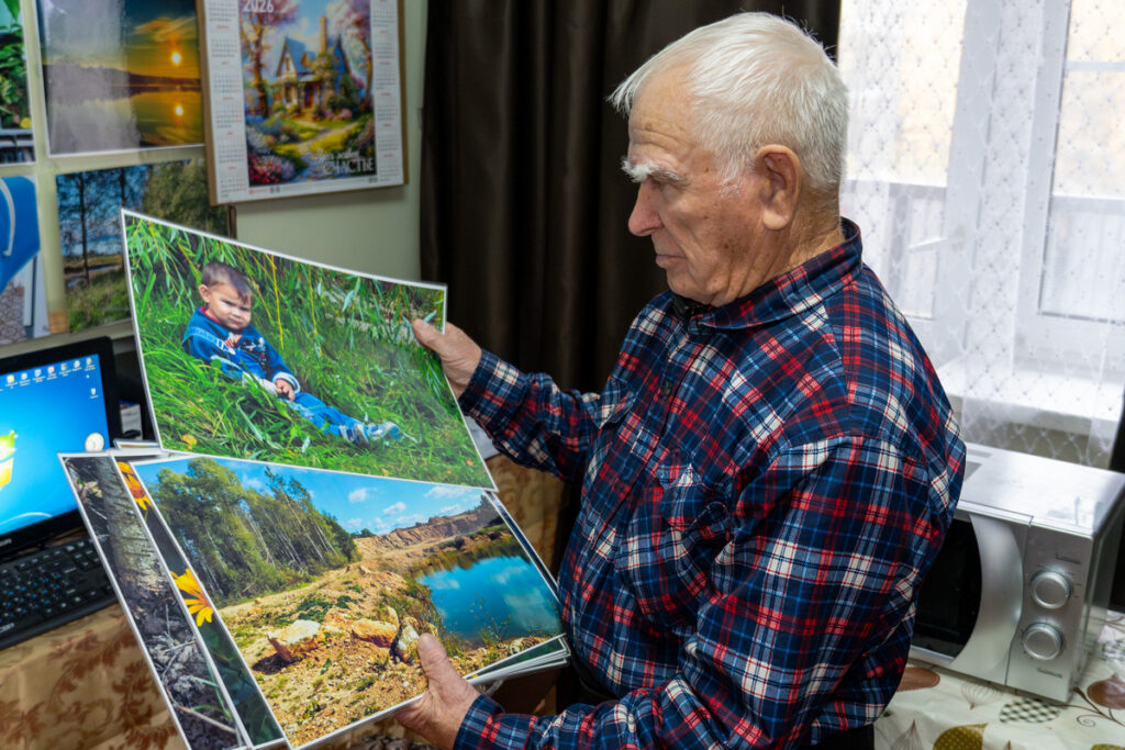 — Василий Константинович у нас мастер на все руки. Если кому что подшить надо, отремонтировать — все к нему, со всеми проблемами справится, — рассказывает социальный работник Жанна. — Он у нас на всех праздниках, мероприятиях — бессменный фотокор, автор выставок — не только в интернате, но и в районе, и в Калуге его работы знают. А по вечерам он раскладывает экран, зовёт приятелей и устраивает в комнате кинозал. Но главное его дело — это, конечно, фотографии.