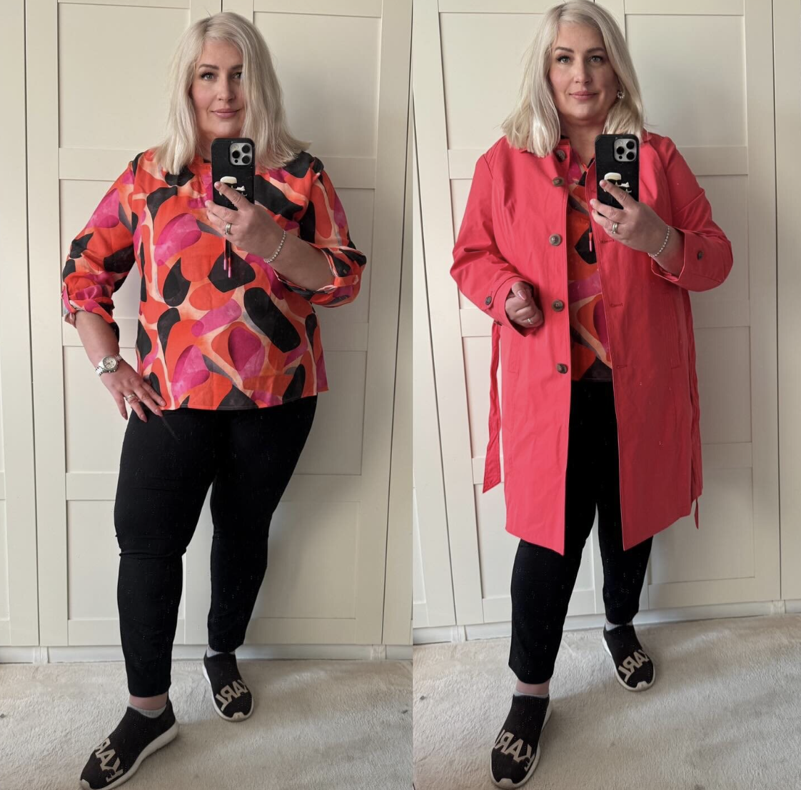 С демисезонными образами такая же история. Она добавляет второй слой, что весной происходит само по себе. Тренч, ветровку или жакет не всегда получается носить нараспашку — это понятно. Но даже встроенный пояс на талии, длина миди и вертикальный ряд пуговиц визуально спрячут животик, и фигура сразу выглядит стройнее. А, чтобы усилить эффект, можно надеть обувь в тон брюк. Этот трюк зрительно вытягивает длину ног и стройнит.
