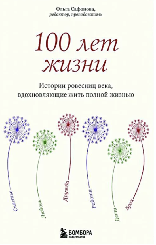 Когда журналистка Ольга Сафонова обнаружила, что перестала радоваться жизни, она насторожилась и обратилась к терапии. Она задумалась о том, что ко времени надо относиться осмысленнее, потому что не знаешь, сколько его осталось. В размышлениях она пришла к тому, что разыскала десять женщин, которые прожили 100 лет, и взяла у них интервью, чтобы узнать, что оказалось в их жизни самым важным, чему они особенно рады, что приносило им счастье и что они любили и любят сейчас. В результате получился сборник личных историй, описывающих жизнь в ее многообразии, с потерями, преодолением трудностей, радостью и мудростью.