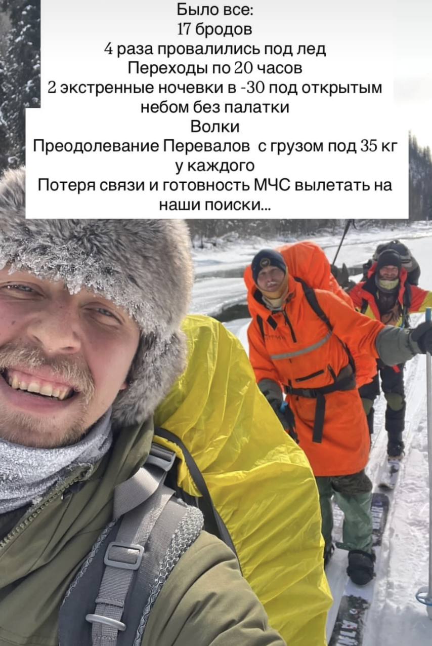 По словам Олега Тайги, никто не предполагал, что маршрут будет настолько жестким. Холодная ночевка в глухой тайге (без палатки и печки), падение одного из участников экспедиции в воду…