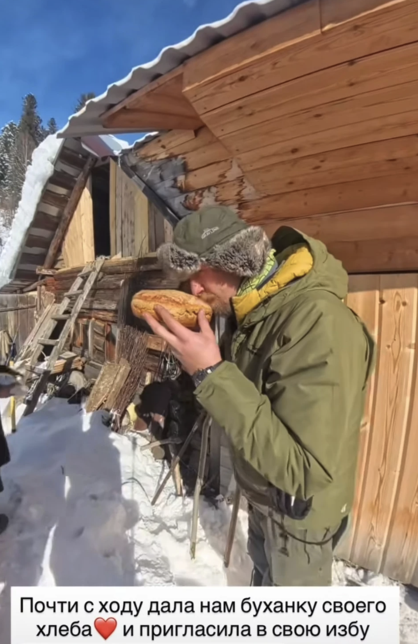 Кроме нехитрых лекарств, парни передали таежной затворнице баночку меда – подарок от снегоходчиков. Ну а она в долгу не осталась, угостила своим хлебом и травяным чаем (из бадана с морковью).