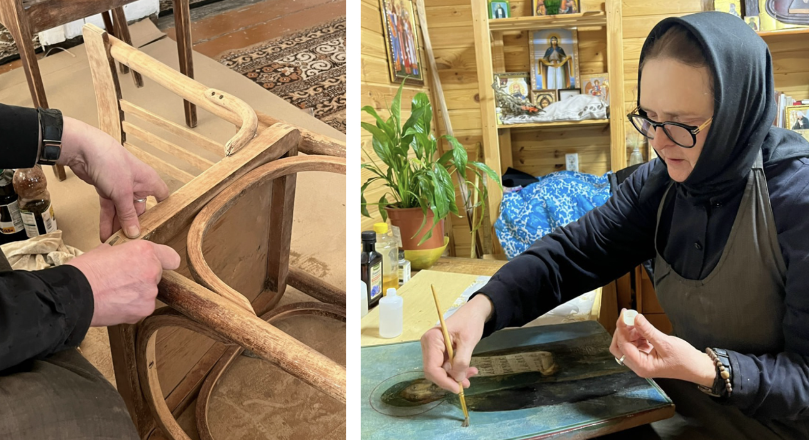 Летом на плечах послушницы огород в 6 соток и две теплицы, где посильно выращивают овощи для общины. Благо, что сажать и копать картошку помогают паломники и трудники. Иначе даже сообща сестрам с таким объемом не справиться. На прополку каждое лето здесь ждут помощников с большой радостью — сотки картошки сами себя не обработают. Однако Валентина не ропщет. Вот и зимнюю передышку использует для полезного творчества. Реставрирует старинную мебель, доставшуюся монастырю от прихожан, шьет одежду, пишет иконы. В прошлой жизни она была иконописцем и реставратором, а еще певчей на клиросе приходского храма и регентом в церковном хоре. Ну и, конечно, теперь поет на службах в храме Покрова Пресвятой Богородицы.