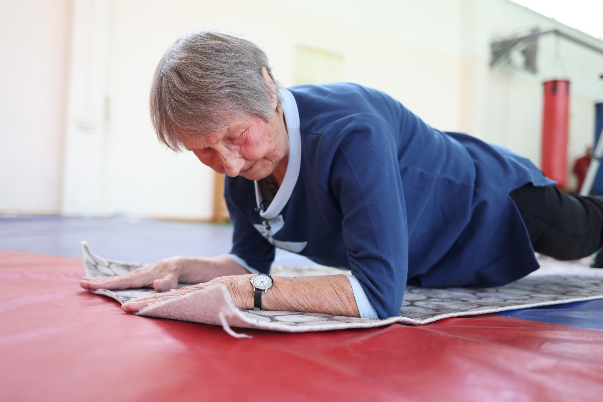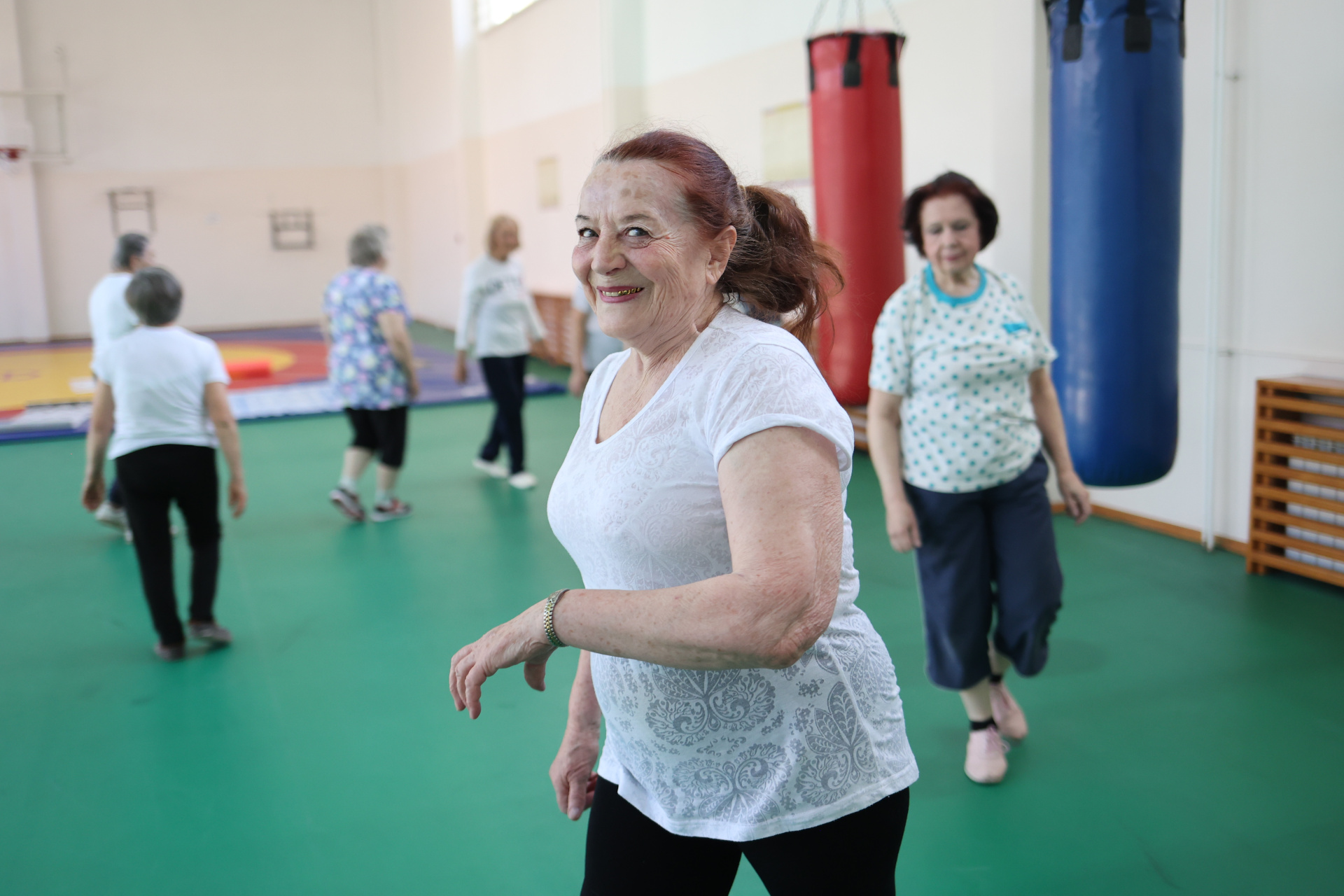 Неожиданно помощь оказали военные: хотя никто не надеялся, они разрешили использовать для занятий спортзал Военного института СФУ. На физкультуре для старшего поколения всё, как в школе: бег, приседания, отжимания, планка, махи ногами и даже «берёзка». Но выполнения нормативов никто не требует: каждый делает упражнения так, как позволяет здоровье.