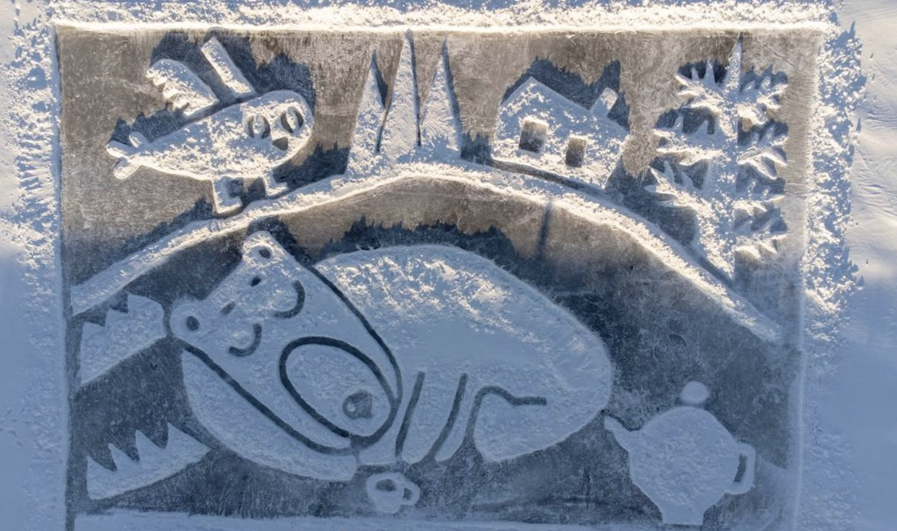 Глухой дедушка Валерий Мельников из села Марково Амурской области каждую зиму на протяжении десяти лет рисовал открытки на реке Хомутина, чтобы порадовать проезжающих мимо. В 2020 году его не стало, однако традицию подхватили неравнодушные жители. В этом году они сделали картину «Дарите добро» размером 40 на 35 метров.