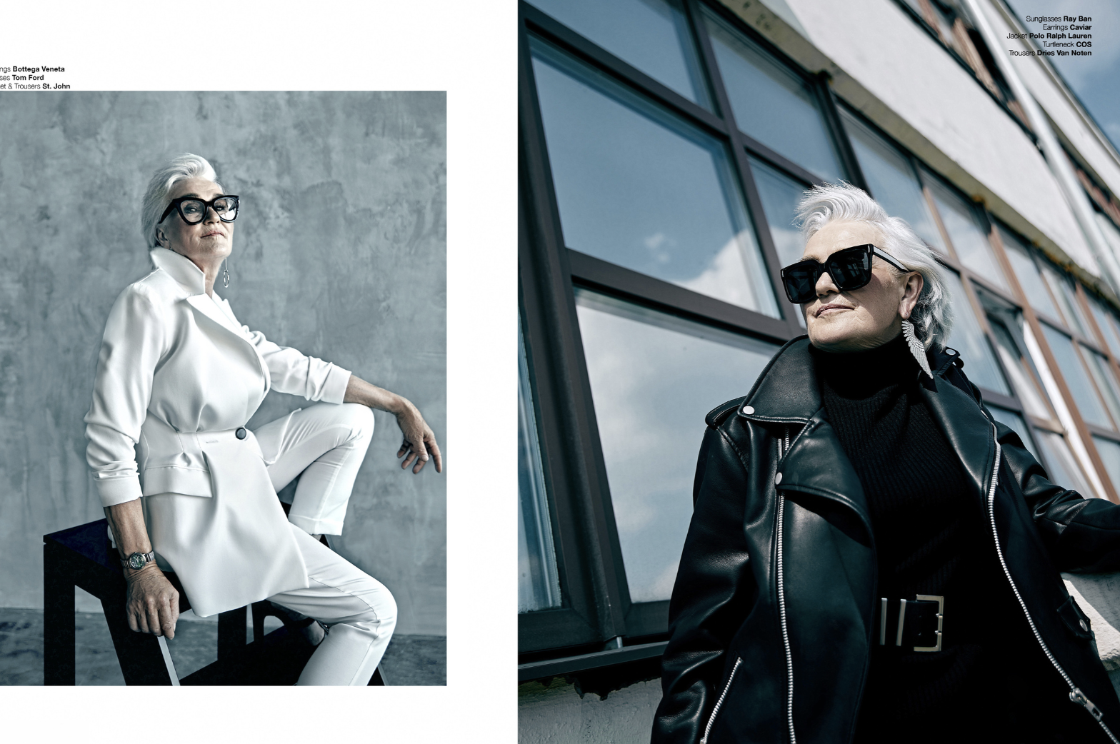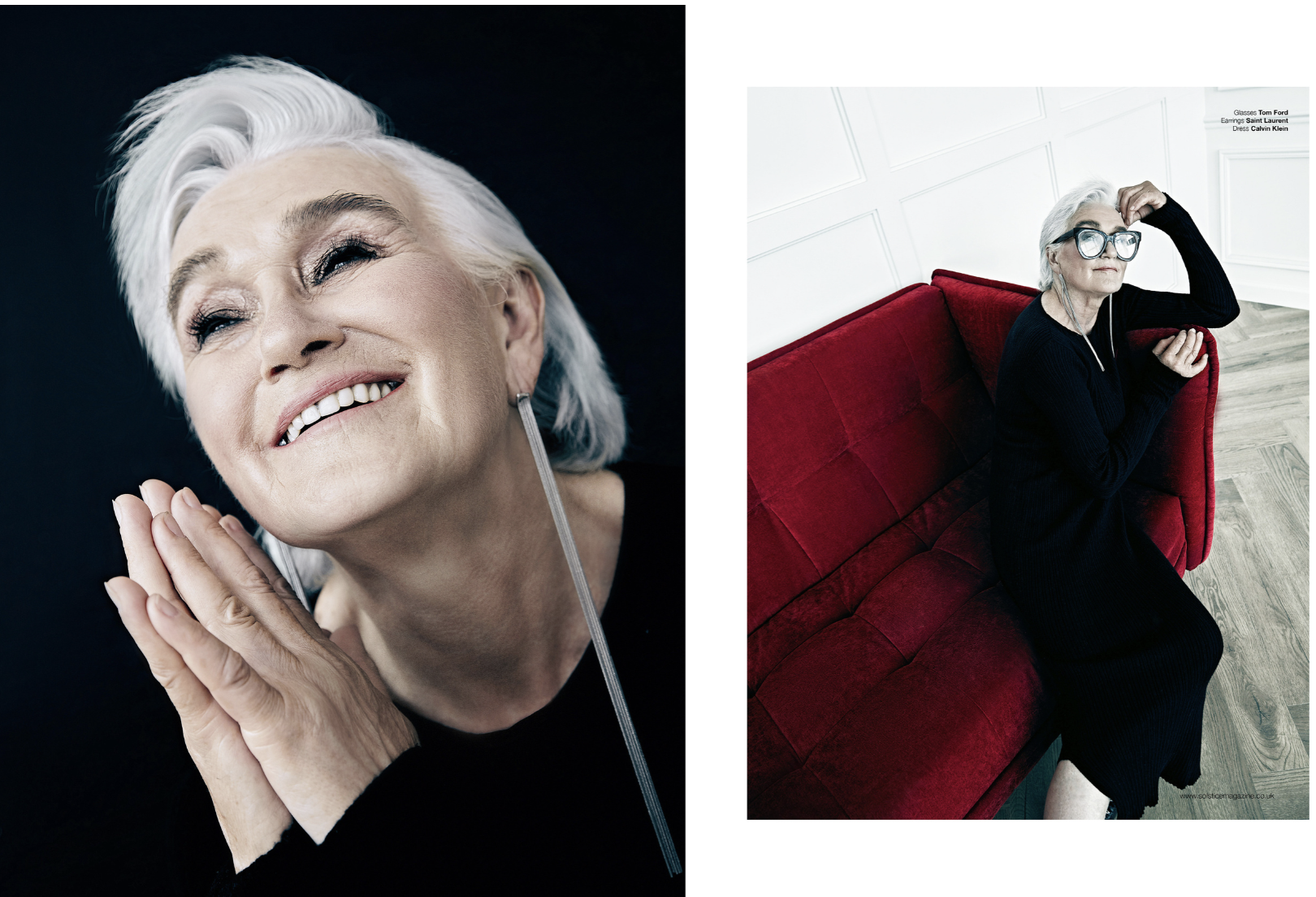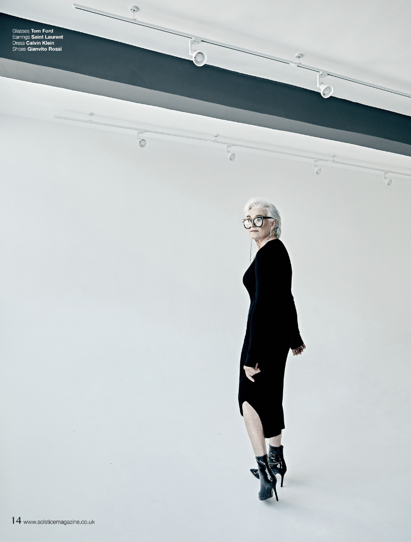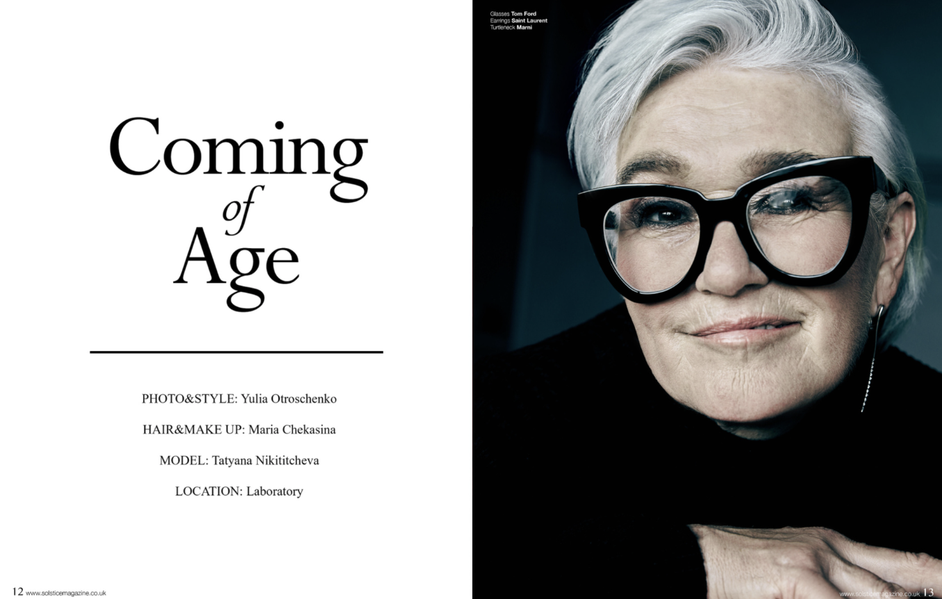 Это первая съëмка в ее жизни — и чистейшей воды авантюра для нас! Накануне мы перемерили весь мой гардероб (да-да, она с легкостью влезла в 42 размер!), а в день самой съёмки так блистательно и непринужденно позировала перед камерой, словно звание “ветеран труда” она получила за разгуливание по подиуму в предыдущие 50 лет, а не за тяжёлый труд на заводе. А после случилось невероятное — кадры с этой съёмки опубликовал британский журнал Solstice.